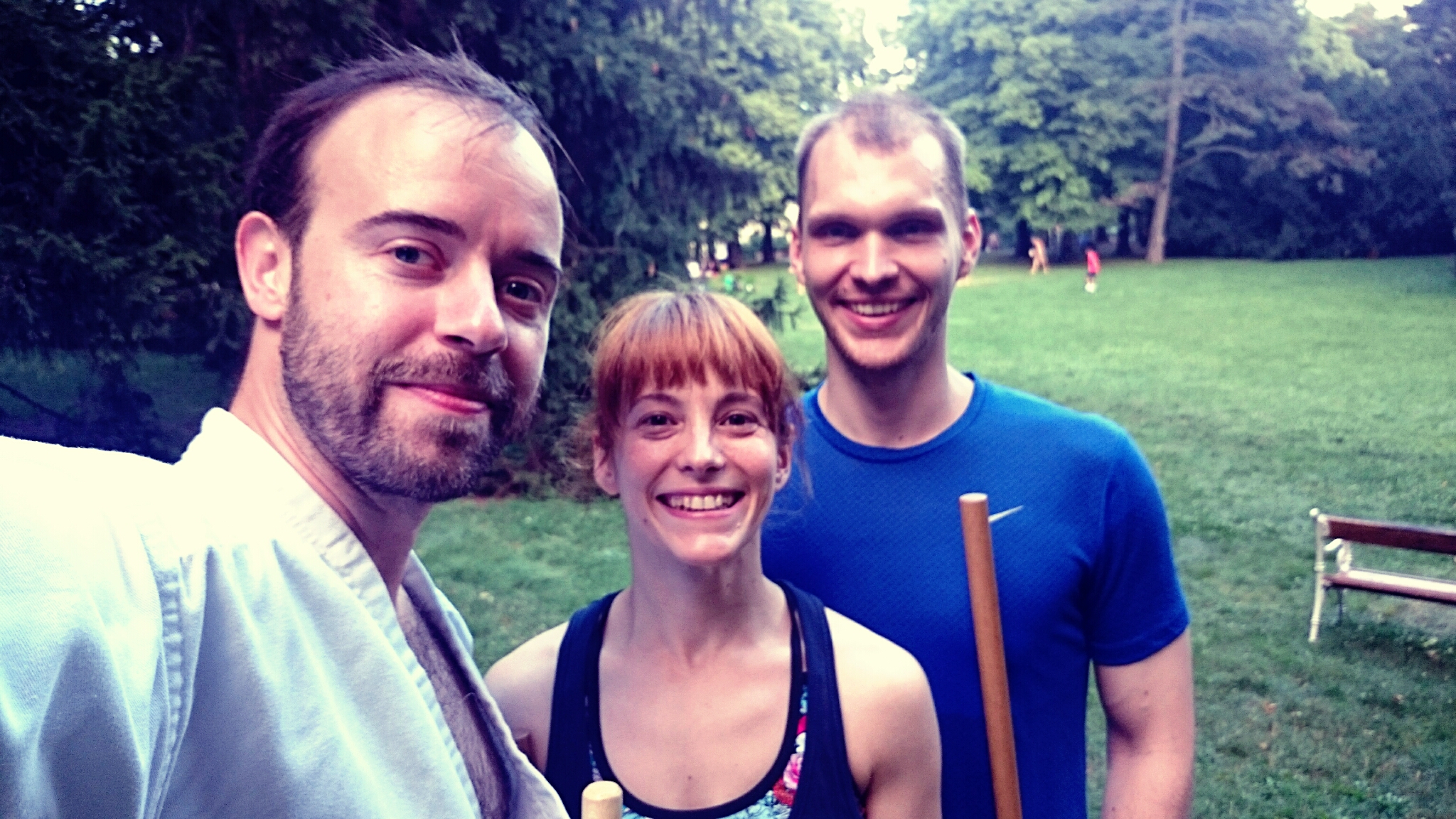 “Aikido im Park” war ein voller Erfolg. Sehr empfehlenswert, sich einmal auf unebener Erde zu bewegen und unter freiem Himmel – das entschädigt auch für die schweißtreibenden Temperaturen…